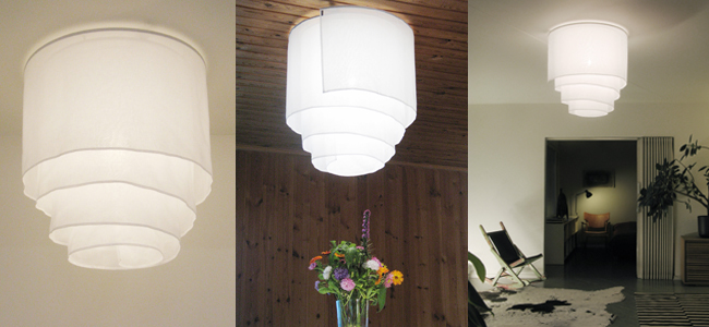 Vuolle 65cm -plafondi soveltuu hyvin huoneen yleisvalon lähteeksi. Valo kuultaa kangaskerrosten läpi pehmeästi, mutta tehokkaasti. Varjostimen kangas voidaan irrottaa puhdistuksen ja silityksen ajaksi. Vuolle-valaisimia on saatavana sekä riippuvana valaisimena että suoraan kattoon asennettavana plafondivalaisin-versiona.