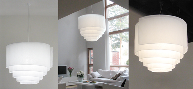 Valaisimessa on kolme E 27 kantaista polttimoa. Siksi sen valoteho voidaan räätälöidä isojen tilojen yleisvalonlähteeksi. Valaisin voidaan toimittaa myös himmennettävänä versiona. Paloturvallinen tekstiili on mahdollista irrottaa pesua ja silitystä varten.